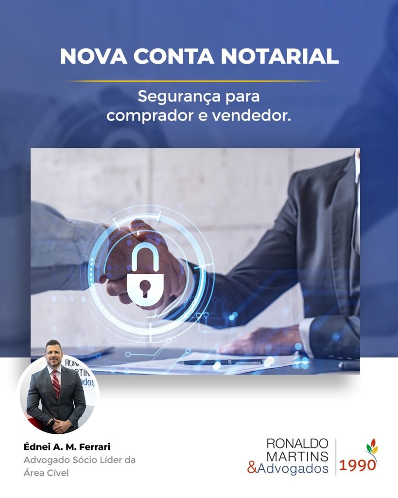 Na hora de fechar negócios é muito comum que as partes fiquem em dúvida se a outra parte vai realmente cumprir o prometido. Mas acaba de chegar ao mercado uma solução para eliminar este receio e dar segurança tanto ao vendedor quanto ao comprador. Trata-se da Conta Notarial, regulamentada pelo Conselho Nacional de Justiça. Trata-se de uma Conta feita por meio de cartórios, de forma digital, que permite o depósito do valor em custódia, com liberação somente depois de um tabelião verificar o cumprimento do contrato de compra e venda por ambas as partes.